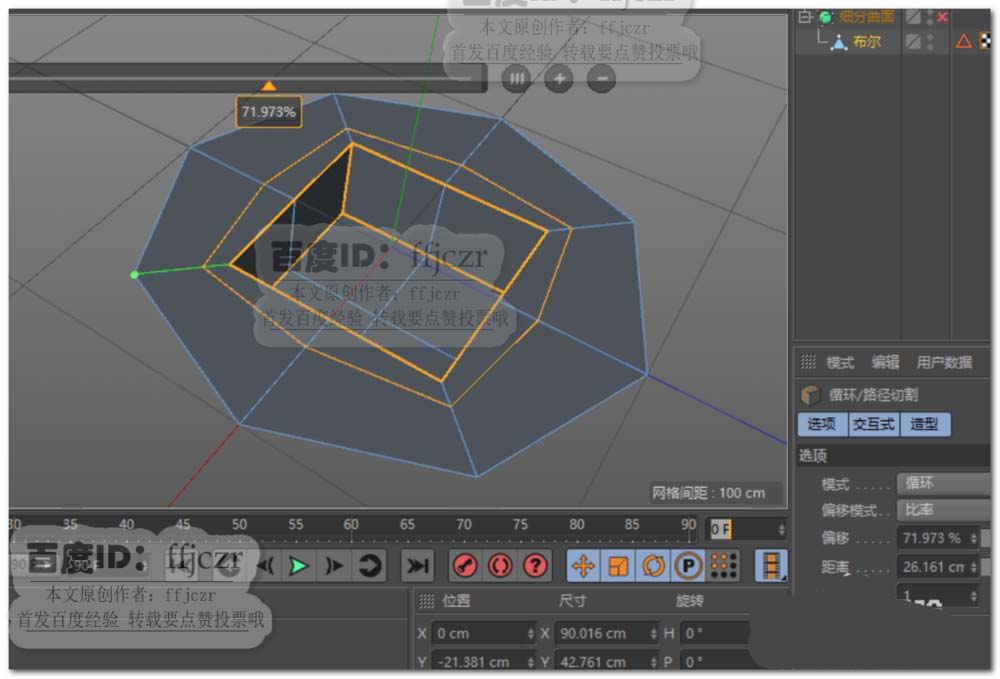 6、选用循环边工具,在圆盘与四方孔之间添加一条循环边。如图所示。