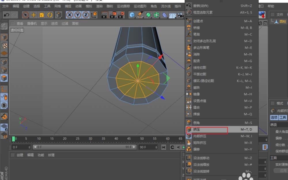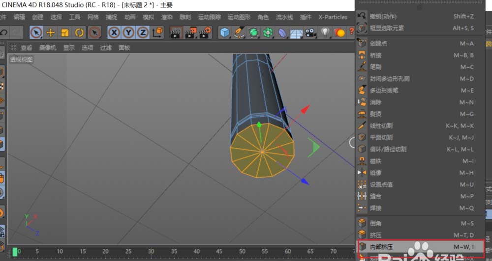3、面模式下,选中多边形的底面,用内部挤压挤、挤压出如图形状。