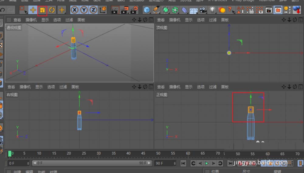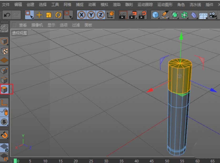 4、面模式 ,选中最上一段面,用缩放工具调整出弹壳的上部。