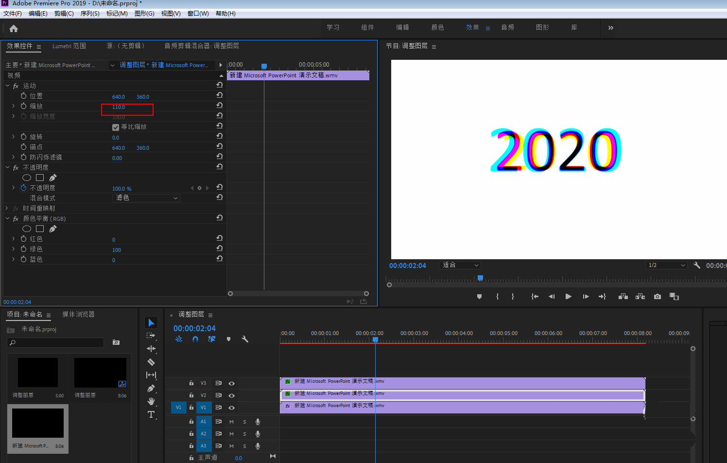 8、这样做,那么视频RGB颜色分离特效就做出,缩放数字越大,则效果更明显,反之就不是那么明显了,如下。