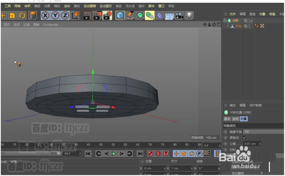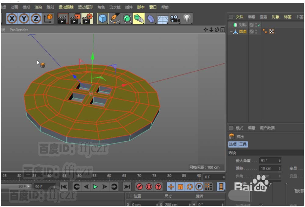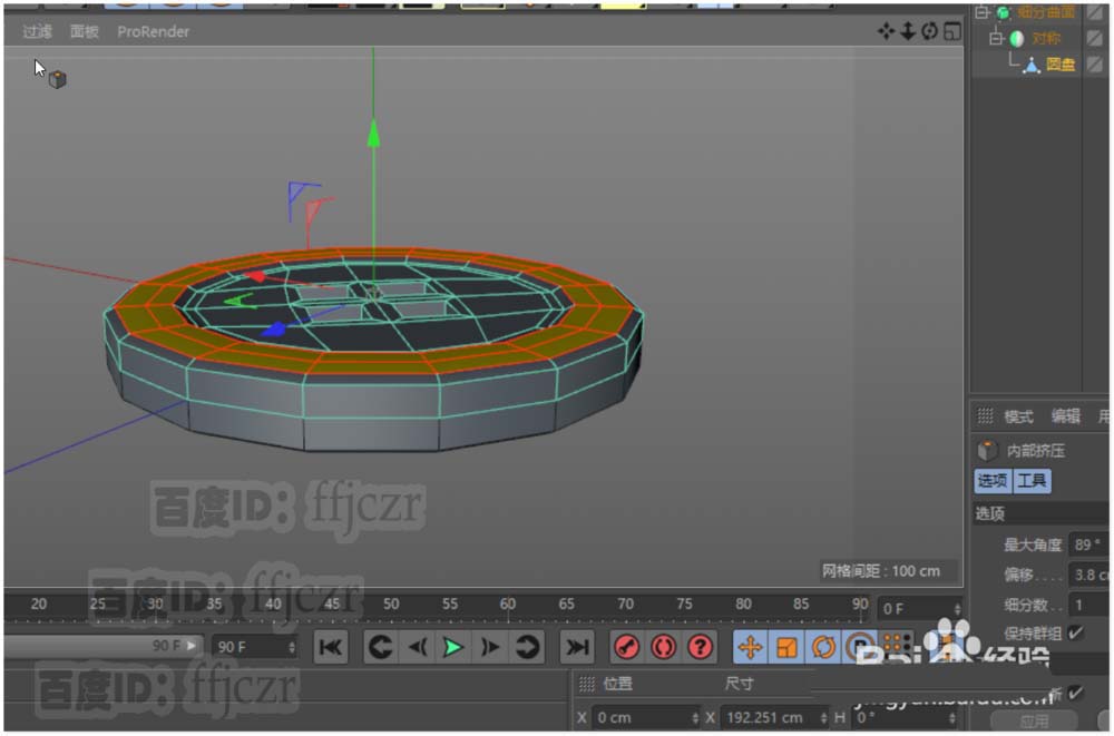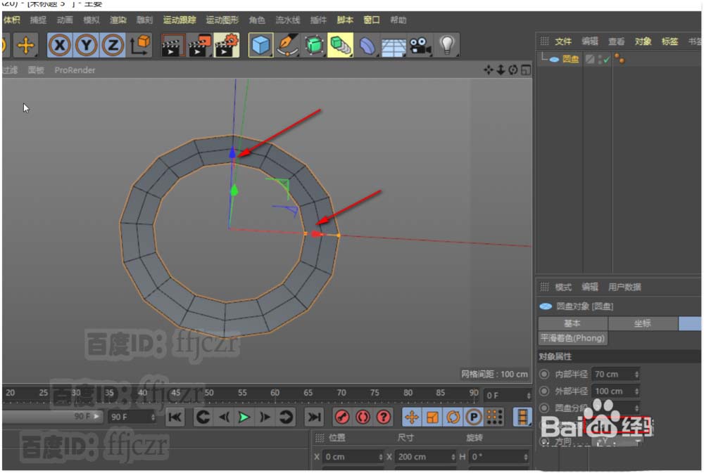 1、创建一个圆盘,内部半径为70,外部半径为100,圆盘分段为2,旋转分段16;方向为Y。
