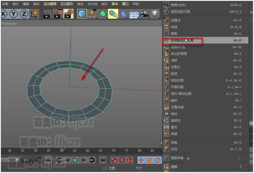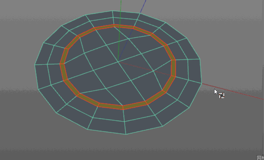 5、面模式中,选中上步倒角与圆盘内边形成的一圈面,将其删除。在边模式下,选中删除面后的两圈边进行缝合。得到一个完整的新结构圆盘多边形。