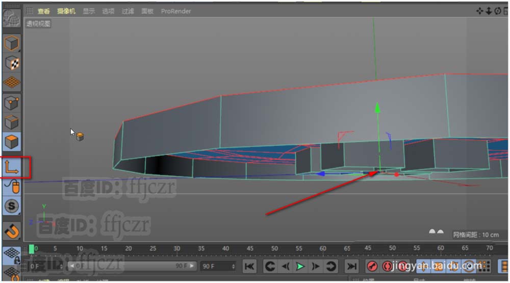 8、选中所有面,进行挤压。偏移距离为10;启用轴心,将坐标向下移动10的距离。关闭轴心。