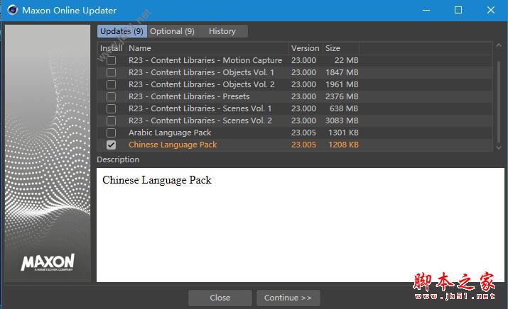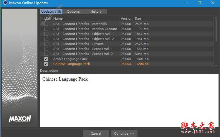 打开语言包的位置,选择要安装的.c4dupdate包即可