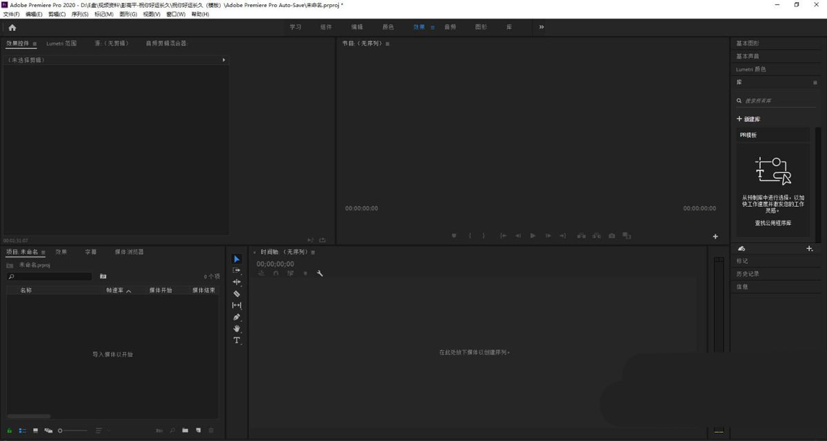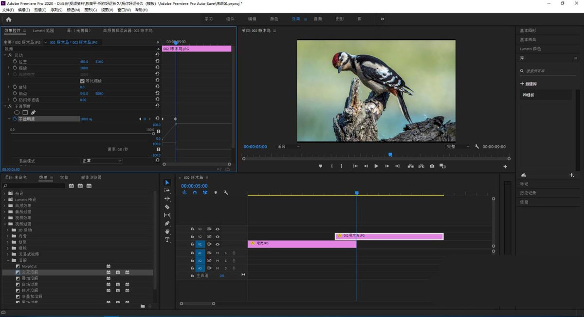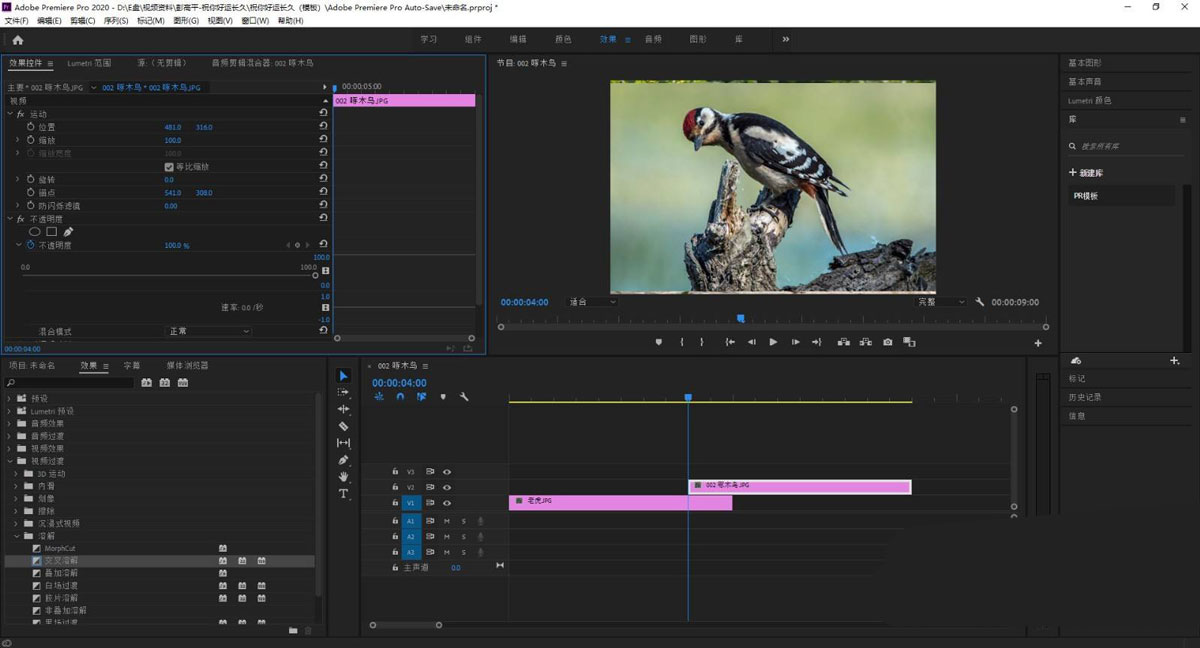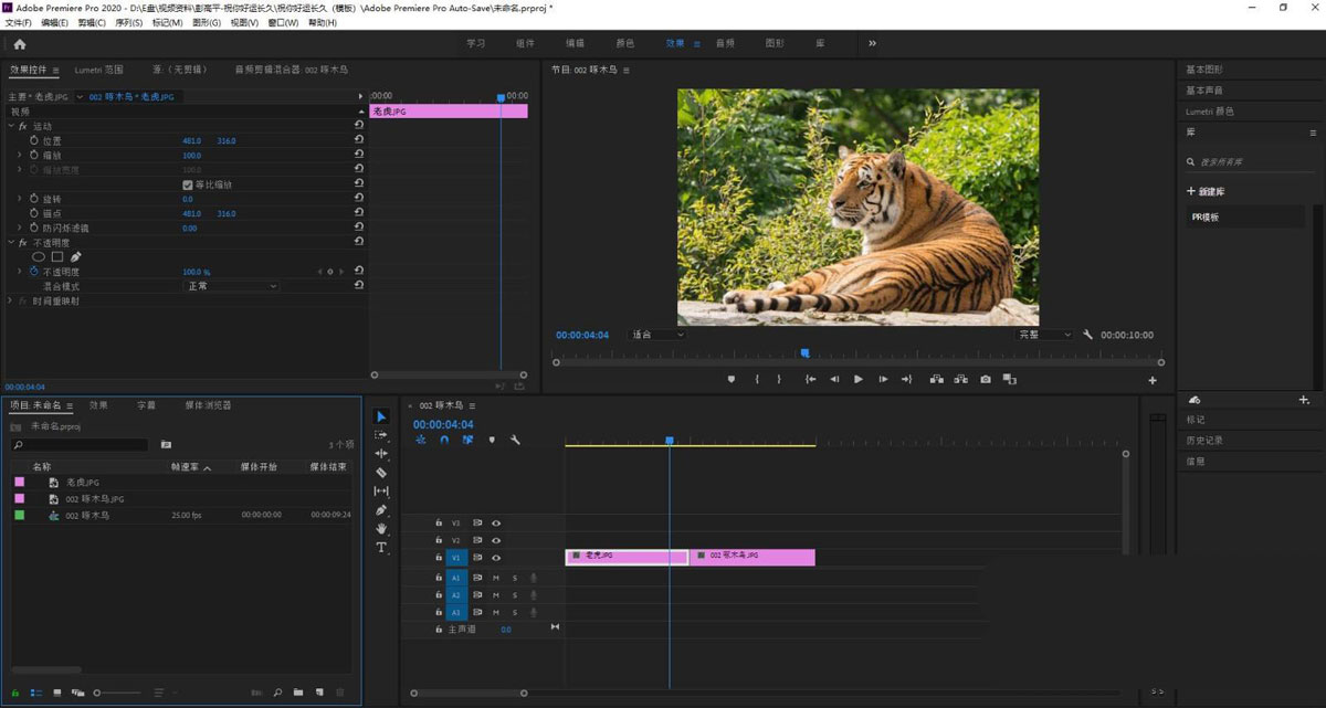 鼠标左键双击项目面版,导入素材并将其放到时间轴面板上。