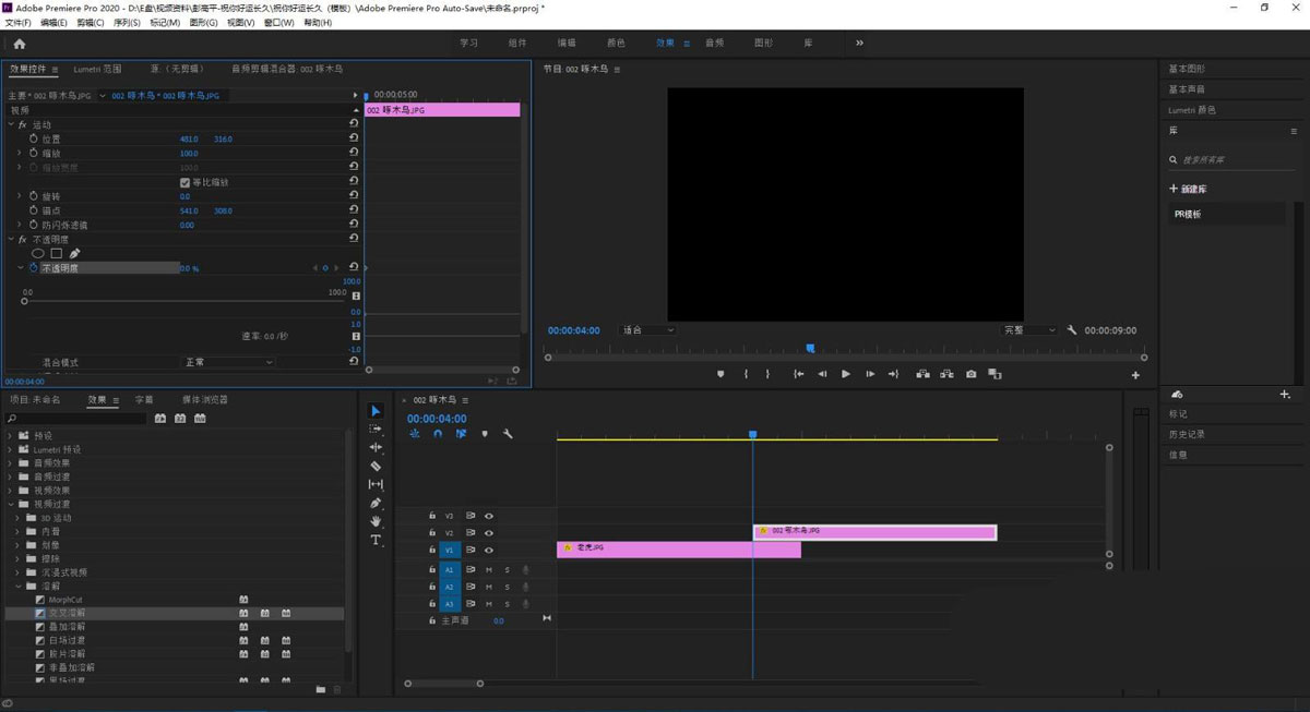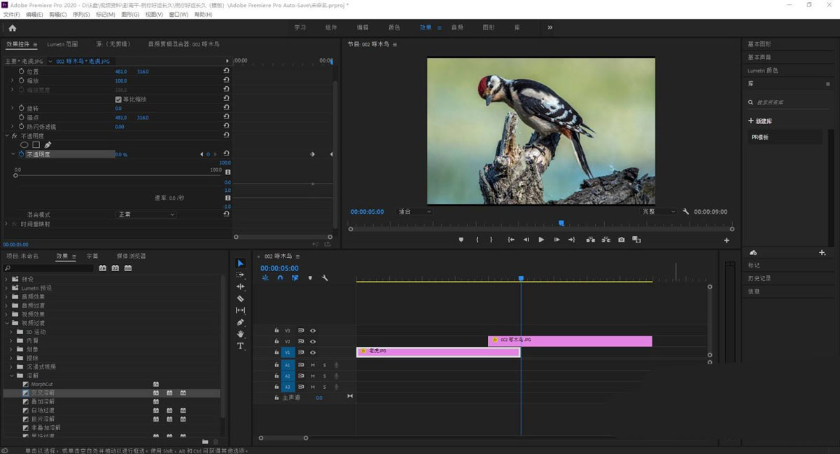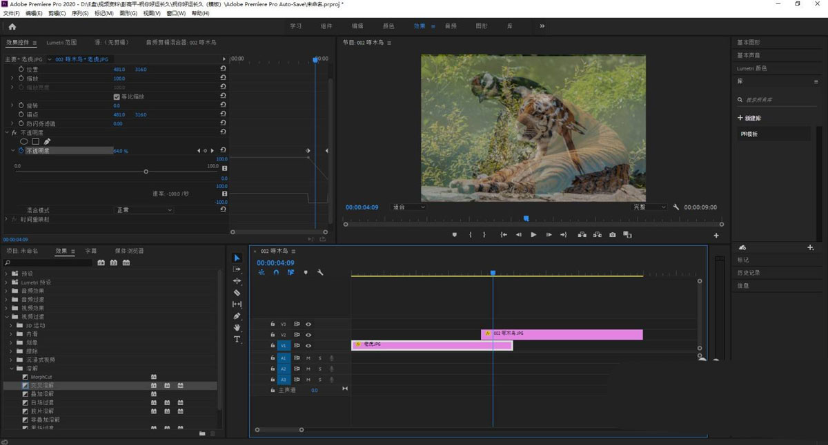 点亮高轨上的素材。将“不透明度”的码表点亮。