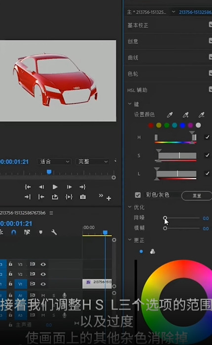 接着我们调整H、S、L三个选项的范围以及过度, 使画面上的其他杂色消除掉。