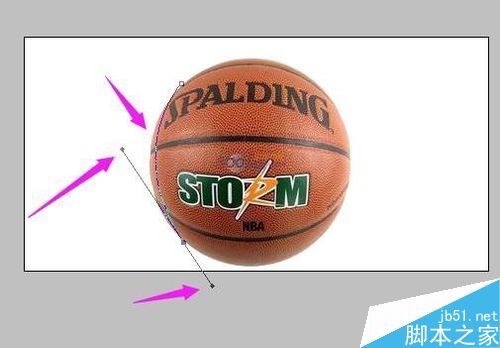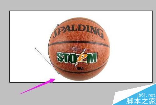 3、然后,一边按住键盘的ctrl键,一边用鼠标点住控制杠两端点的其中一个点,上下左右地移动,调节弧线,把弧线贴合在球体边缘。如图所示。