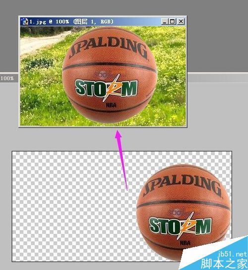 9、用工具箱的移动工具,点住球体,可以把球移动任意的位置,或者是移动到其它的文件当中。如下图。