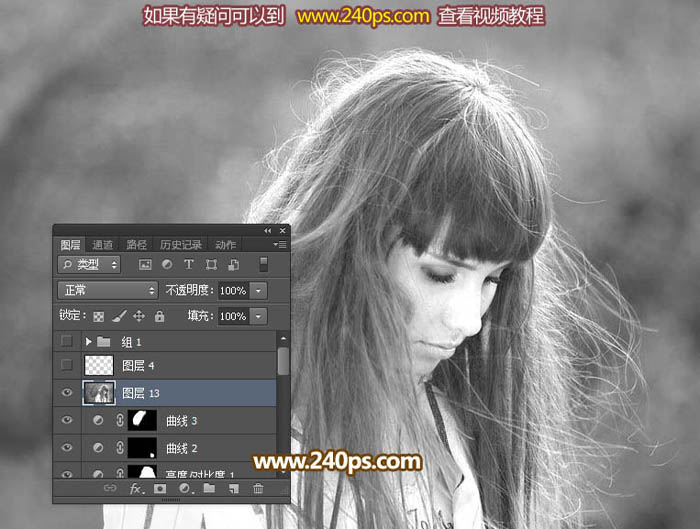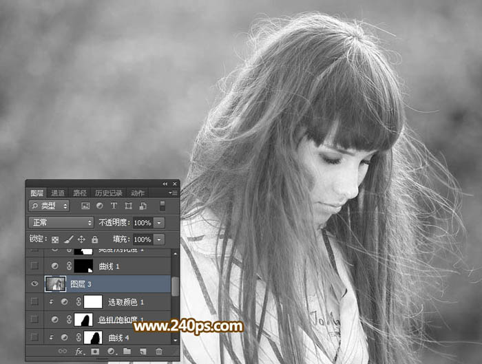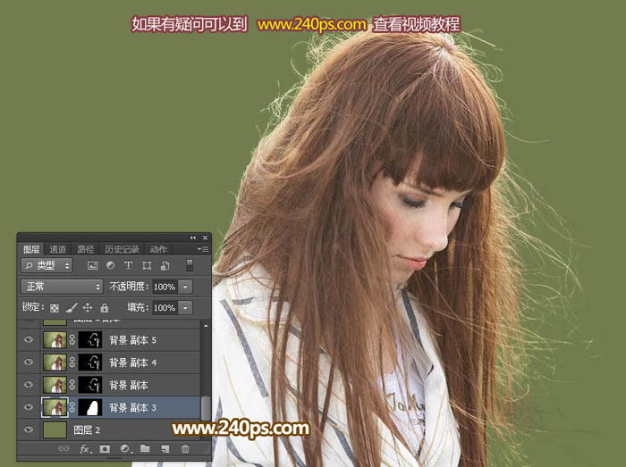 18、按Ctrl + J 把发丝图层复制两层,效果如下图。这时候发丝就非常明显了。