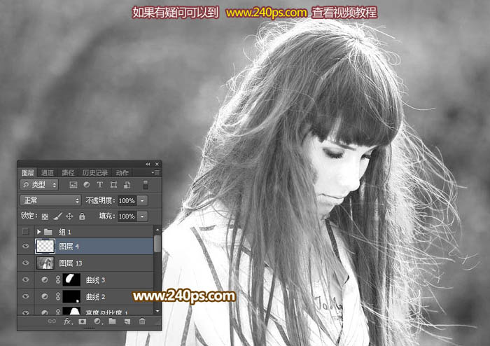 11、新建一个图层,按Ctrl + Alt + Shift + E 盖印图层。现在发丝亮度都比较均匀。