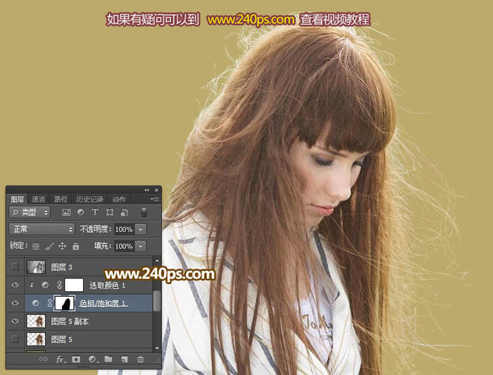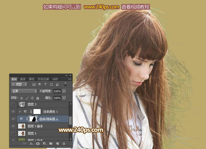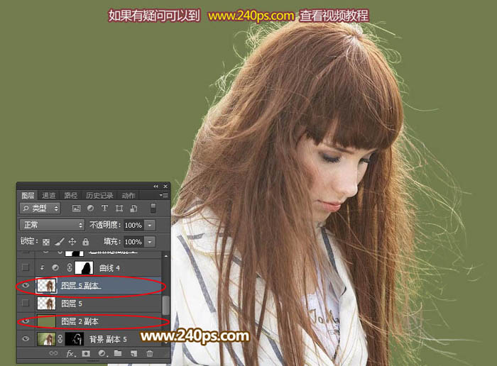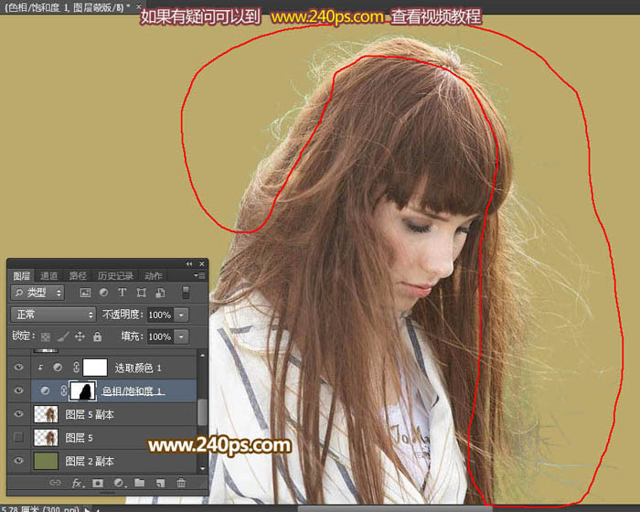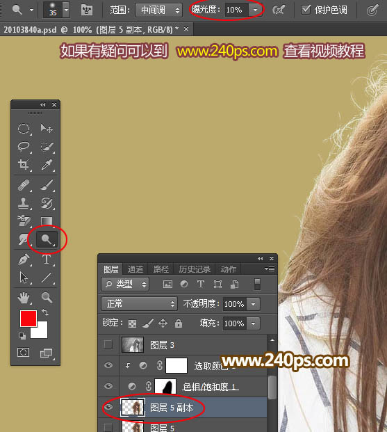 30、发丝边缘有过暗的地方,可以用减淡工具在下面的这个图层进行涂亮。