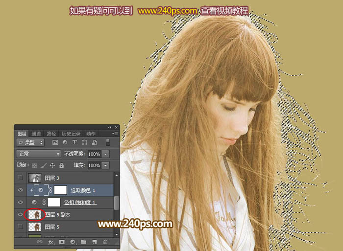 26、选中下图所示的图层,然后点蒙版再把选区填充黑色,取消选区后效果如下图。这时候看到发丝还有很多黑色背景,这是抠图换背景的难点,没有关系,下面会处理。