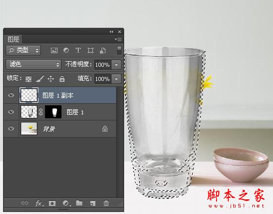 第六步:载入图层1的蒙版选区,羽化2像素,选择图层1副本删除,然后将图层模式改为滤色,如下图所示