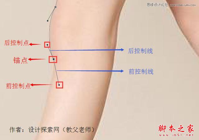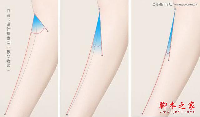 根据上图我们可以看出,前控制线(与主体物大腿之间)不同的角度,以及控制线的长度都决定了路径的弧度以及和主体物大腿的“贴合”长度。如果我们抠图多了,你就有“感觉”了,知道前控制线大概需要多长、多少角度。就好比你去菜市场买菜,你说你要几块钱菜,买菜的阿姨随手一抓、再一颠,秤上一放,刚刚好!这都是长时间训练出来的。不过教父老师有点小建议: