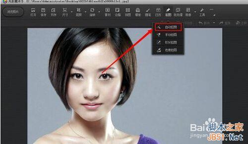 用光影魔术手打开一张图片,在上边的功能栏中点击“抠图”,如图所示: