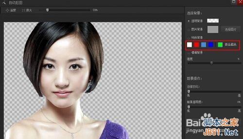 点击“替换背景”,在右边有各种颜色可供选择,也可以调取电脑存有的图片作为背景,如图所示:
