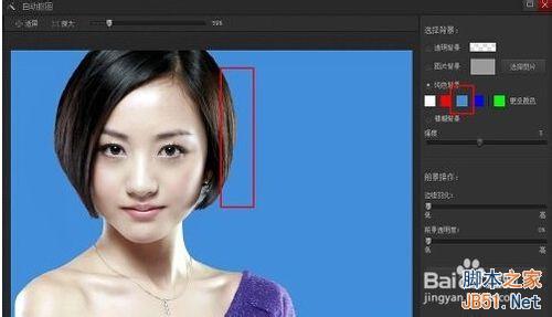 在下拉框中选择“自动抠图”,当然也可以选择“手动抠图”,不过,手动抠图不容易操作,要比较有耐心才行。但自动抠图也有重大缺陷,就是背景如果与所想要抠取的物体的色差不大时,抠图时很难操控,如图所示: