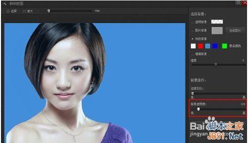 选择白色,你会发现光影魔术手本身抠图存有的缺陷,致使边缘非常粗糙,如图所示: