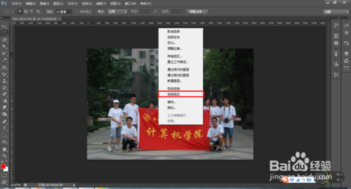然后在绘制好的矩形选框,点击数遍右键选择"变换选区"