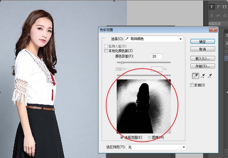 3、选择左边第一个吸管工具,吸取人物模特后面的背景颜色,效果如下图