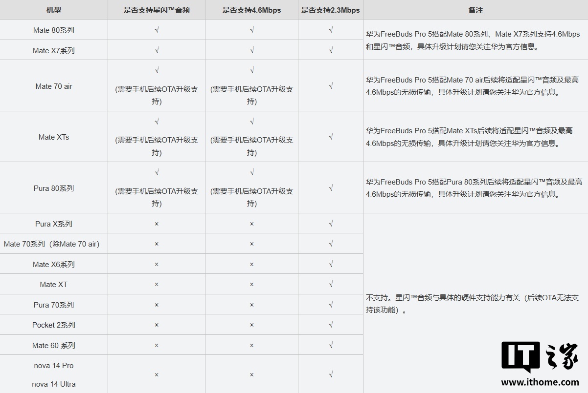 《华为 Pura 80 系列、Mate 70 Air、XTs 将 OTA 支持星闪音频,但体验略逊于 Mate 80、X7 系列》