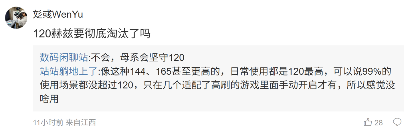 后续有用户在评论区表示:“永远落后友商一步”,博主回复道:“1.5K+185Hz 是领先吧”;另一名用户则询问道:“120 赫兹要彻底淘汰了吗”,博主则回复道:“不会,母系会坚守 120”;另外一名用户则表示:“说续航的,要知道荣耀会上一个万级大电池”,博主则表示:“对啊”。