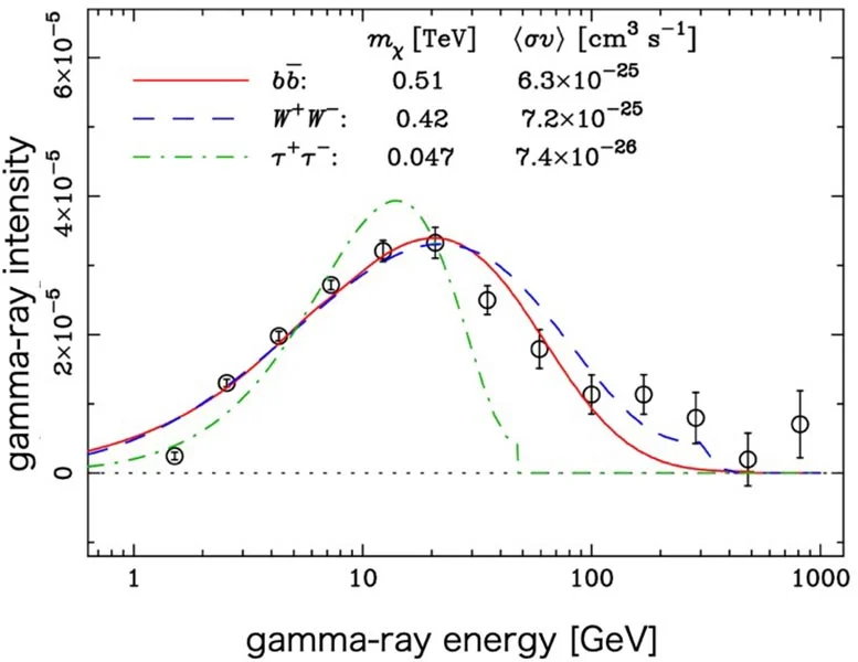 多种理论认为暗物质由弱相互作用大质量粒子(WIMPs)构成,并预测当两个 WIMP 碰撞时会发生湮灭,释放出高能粒子,包括伽马射线光子。因此,研究者多年间持续以宇宙中暗物质密度高的区域(如银河系中心)为目标,搜寻特定能量范围的伽马射线信号。