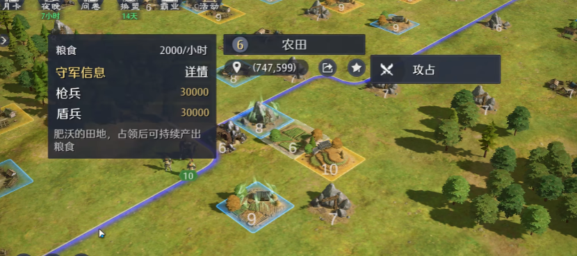 那么在资源上面注意,前期流寇可以杀,但是不要杀太多,少杀就可以了,前期主要快速的是占领土地,这类任务在完成了之后可以带来足够的体力,特别是每次开了一个土地之后,其中只要对应等级的流寇被击杀就可以,获取体力解锁而在资源地当中拿到更多的资源,前期快速输送的是粮草,但是粮草上面的资源地足够的情况下,就不要去只针对这类型的资源体供给,根据目前需要使用到的建筑消耗材料来看,石头、木材、铁矿这类资源消耗量都是非常大的。