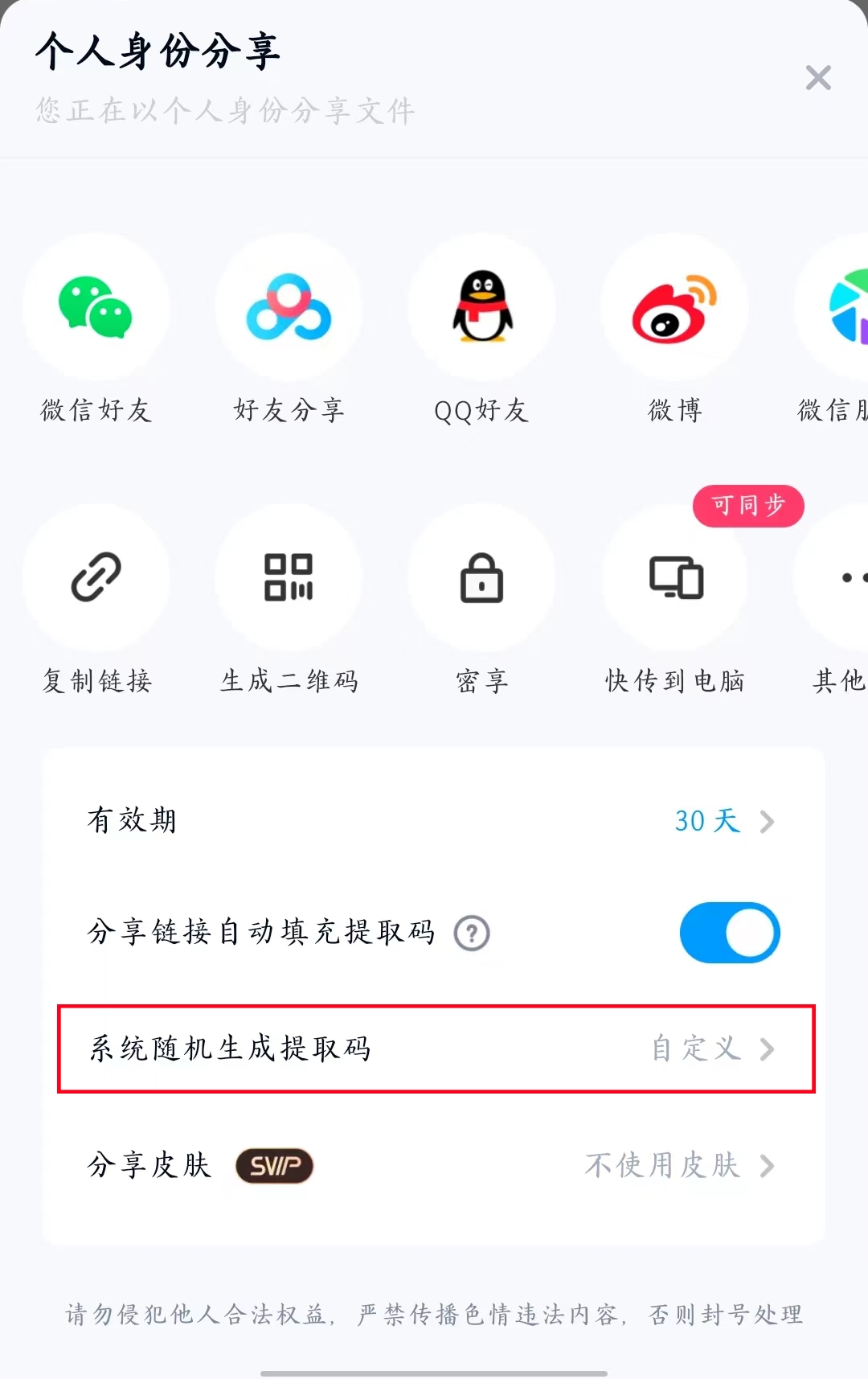 2、选择有提取码的形式,也可以选择自定义提取码。