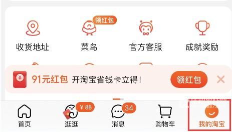 1、首先打开手机淘宝,切换到【我的淘宝】界面。