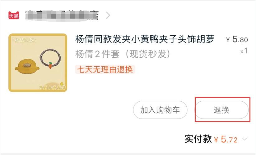 3、找到并点击商品下方的【退换】,然后选择【我要退货退款】。