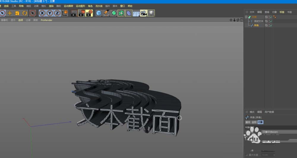5、将两个样条图层拉入到扫描工具之下,就会实现所有扫描的结构都是按照文字结构来进行扫描的,可以得到一个丰富的条状结构,关键是截面上我们可以清晰的看到文字的内容;