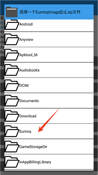 7、然后打开手机文件存储目录选择eumnq文件目录,将刚才的数据包导入进来