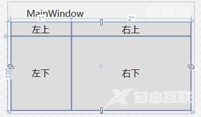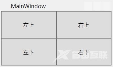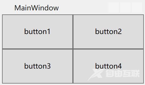 下面为Grid定义得2行2列基础上添加4个按钮, 下图所示:
