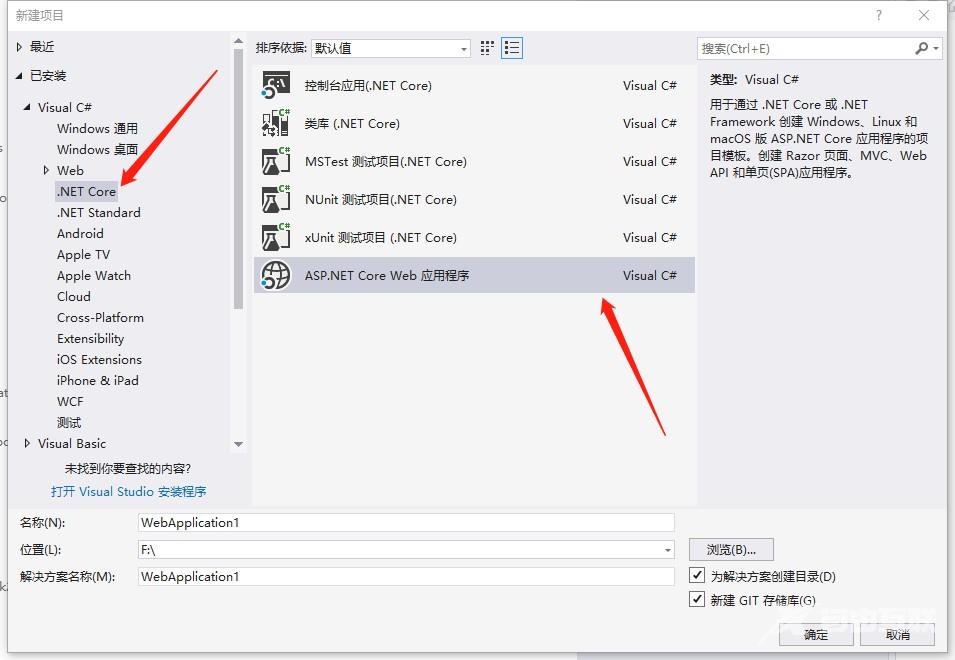 打开Visual Studio 2017,新建 ASP.NET Web应用程序,选择MVC(模型视图控制器)。