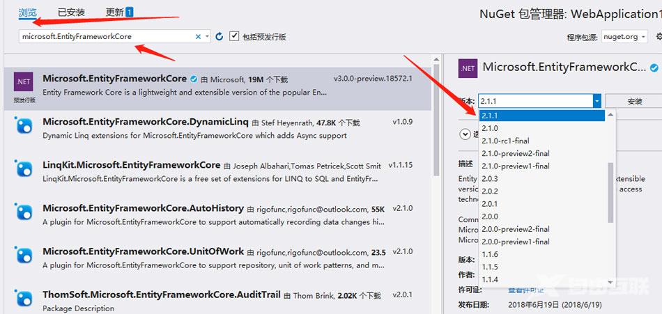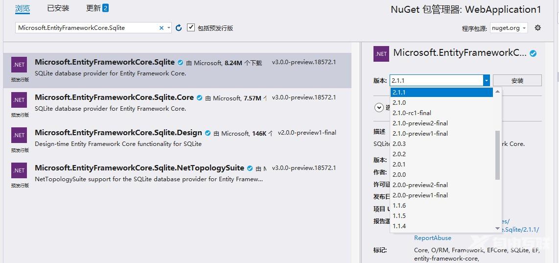 笔者版本 ASP.NET Core 版本为 2.1 ,选择的 NuGet 包版本为 2.11。