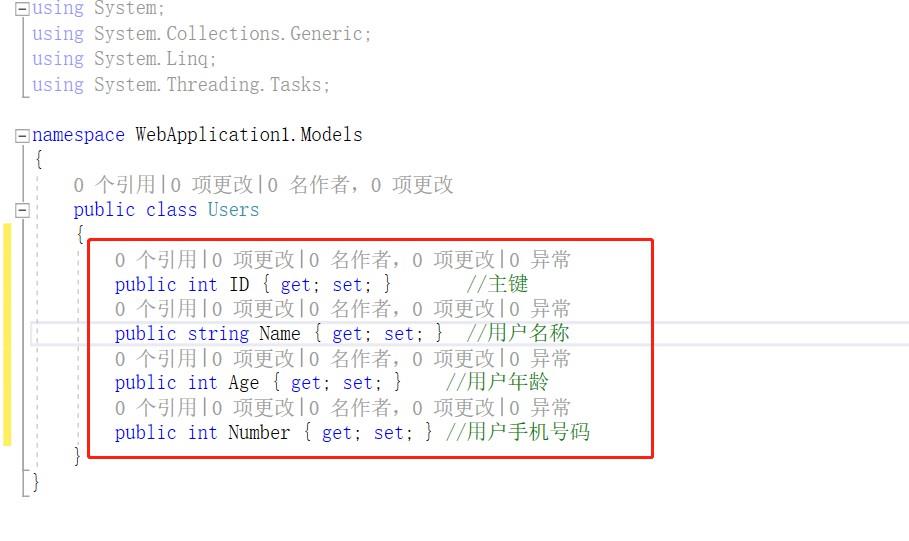 笔者这里只写一个表,如果你想要多个表,可以新建其它类,然后在上下文类中加入。