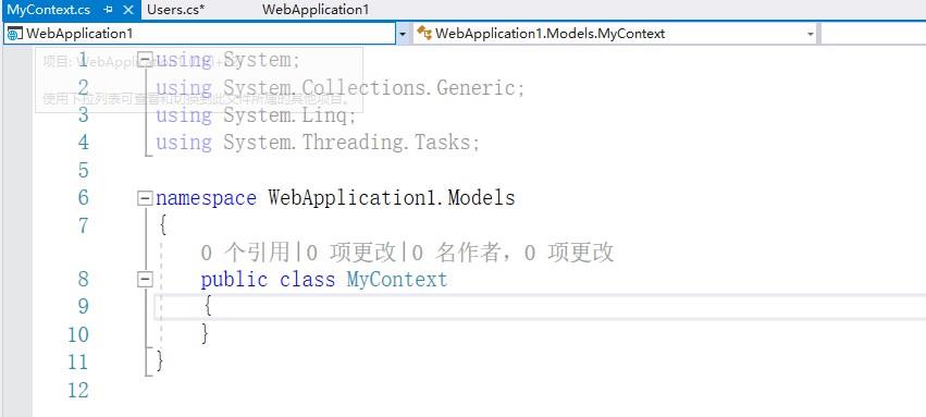 这一步建立模型和上下文,后面将会根据这里的代码生成数据库和数据库表!