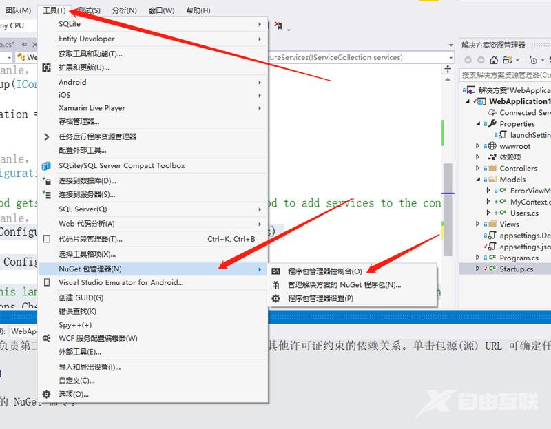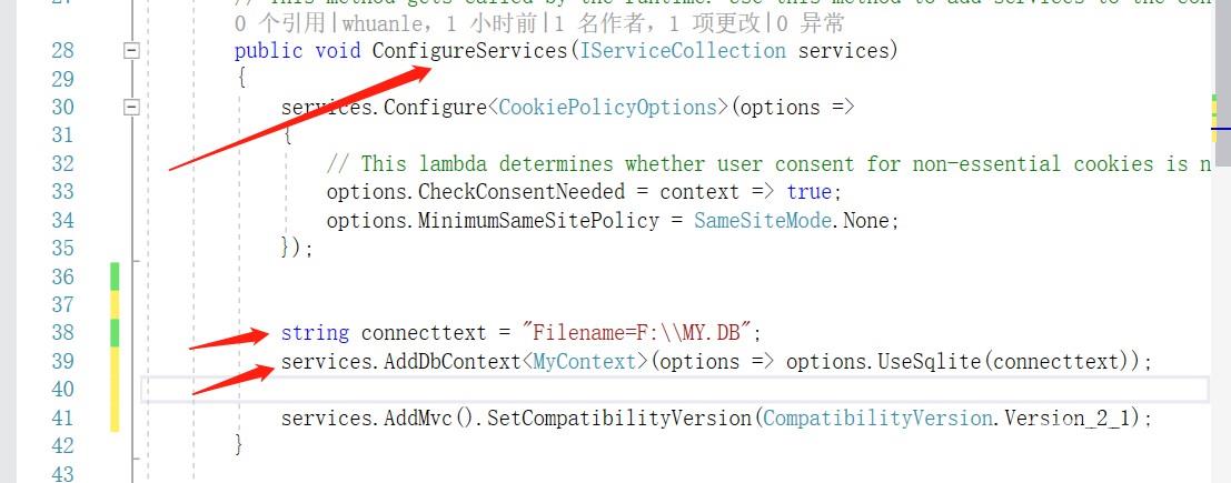 为了让应用生成数据库、使用到这个数据库,需要在Startup.cs 增加代码