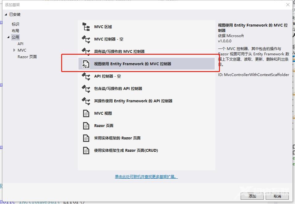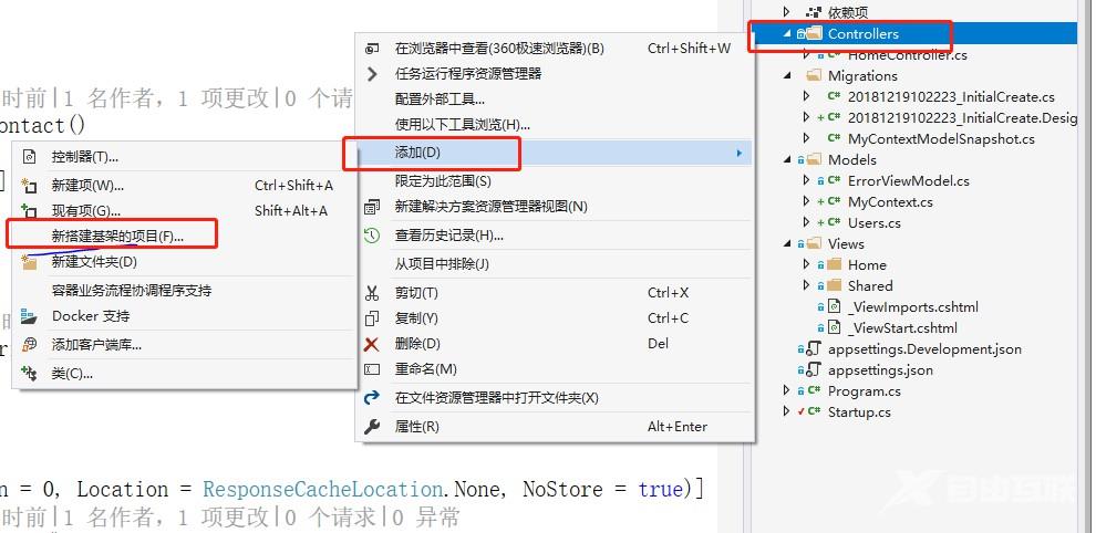 在 Controller 目录,右键点击 添加 -- 新建基架的项目