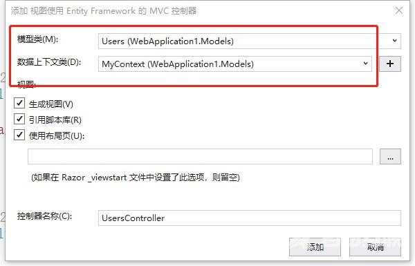 点击 视图使用 Entity Framework 的 MVC 控制器