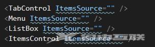 此类控件大多数属于显示列表类的数据、设置数据源的方式一般通过 ItemSource 设置。如下所示: