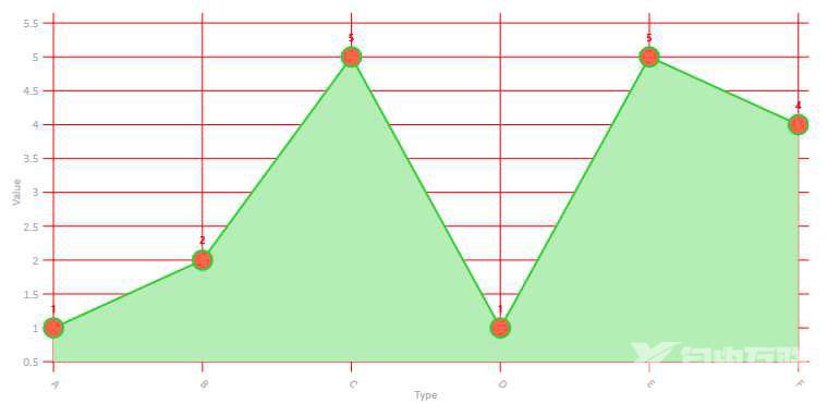 1.线条显示数值: DataLabels="True"2.线条是否弯曲: LineSmoothness="0" 或 "1" 3.线条的颜色: Stroke="Red" //设置线条的颜色为红色4.线条下方颜色: Fill="Pink" //线条的下方颜色5.线条的每个点: PointGeometrySize="20" //设置数据点大小6.显示数据字体颜色: Foreground="Red" 7.数据点的颜色: PointForeground="#FF6347"8.线条虚线: StrokeDashArray="5" //数值愈大间隔愈大, 如下绿色虚线