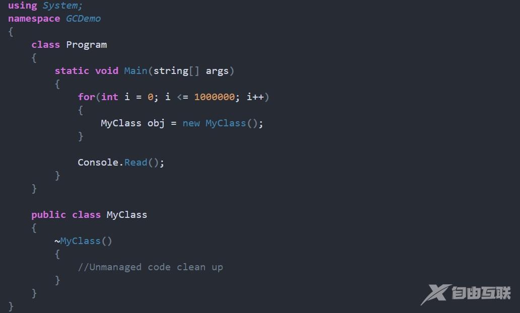 注:垃圾回收器将仅销毁未使用的托管对象。它不清理非托管对象。
