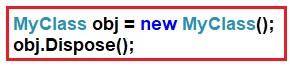 一旦您使用对象,然后您需要调用 Dispose 方法,以便双垃圾回收器循环不会发生,如下所示。