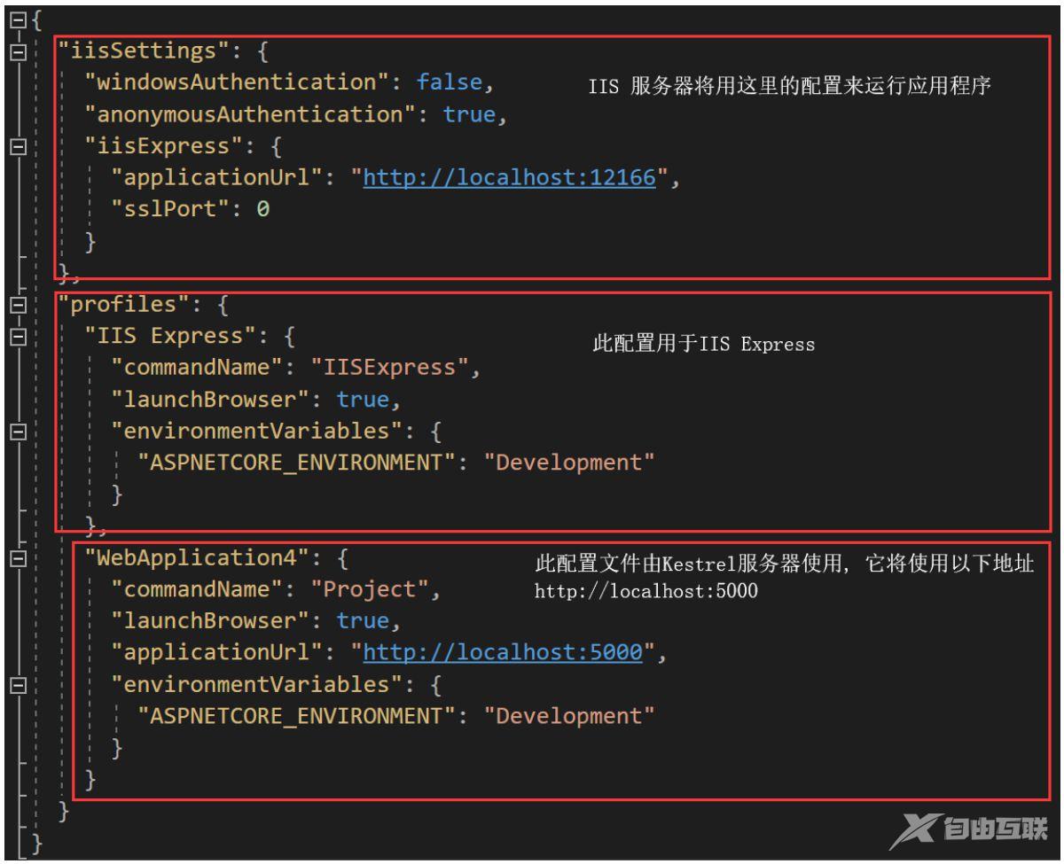 在使用 Kestrel 服务器运行应用程序之前,让我们首先打开应用程序的属性文件夹中的launchSettings.json文件。打开launchSettings.json 文件后,默认情况下,您将找到以下代码。