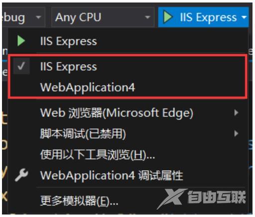 这是因为默认情况下,Visual Studio 在运行应用程序时使用 IISExpress,如下图所示。
