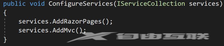 例如,如果要将RazorPages服务或MVC服务添加到asp.net核心应用程序,则需要将这些服务添加到该方法接受的参数中,如下图所示。