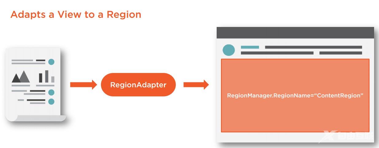 假设在应用程序的某个区域, 需要显示我们定义的视图,这个时候实际上利用了RegionAdapter。